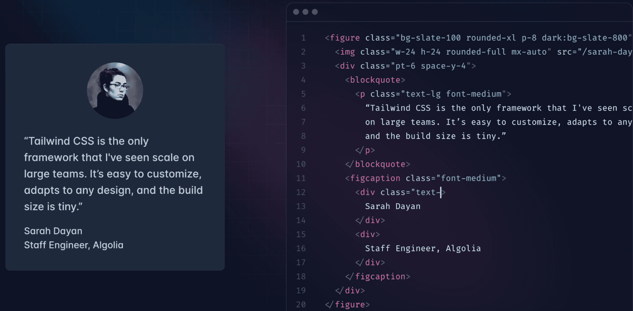 That’s a screenshot from the official Tailwind CSS website. You can see on the right what type of code and classes you must apply to have the user interface on the left. I think you sense it.